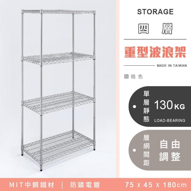 YCDMIT 耐重鐵力士 重型四層電鍍波浪架 75x45x180cm - 鉻色 (波浪架 鐵力士架 收納架 貨架 層架 鐵架 儲物架)