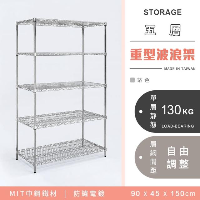 YCDMIT 耐重鐵力士 重型五層電鍍波浪架 90x45x150cm - 鉻色 (波浪架 鐵力士架 收納架 貨架 層架 鐵架 儲物架)