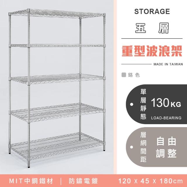 YCDMIT 耐重鐵力士 重型五層電鍍波浪架 120x45x180cm - 鉻色 (波浪架 鐵力士架 收納架 貨架 層架 鐵架 儲物架)