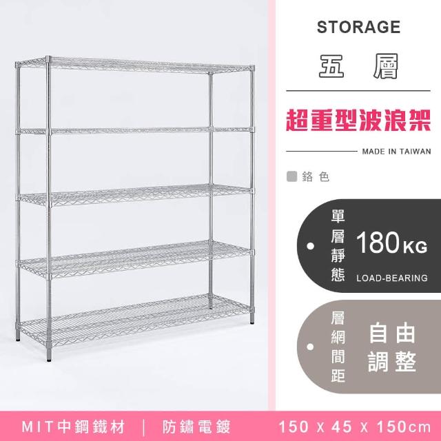 YCDMIT 耐重鐵力士 超重型五層電鍍波浪架 150x45x150cm - 鉻色 (波浪架 鐵力士架 收納架 貨架 層架 鐵架 儲物架)