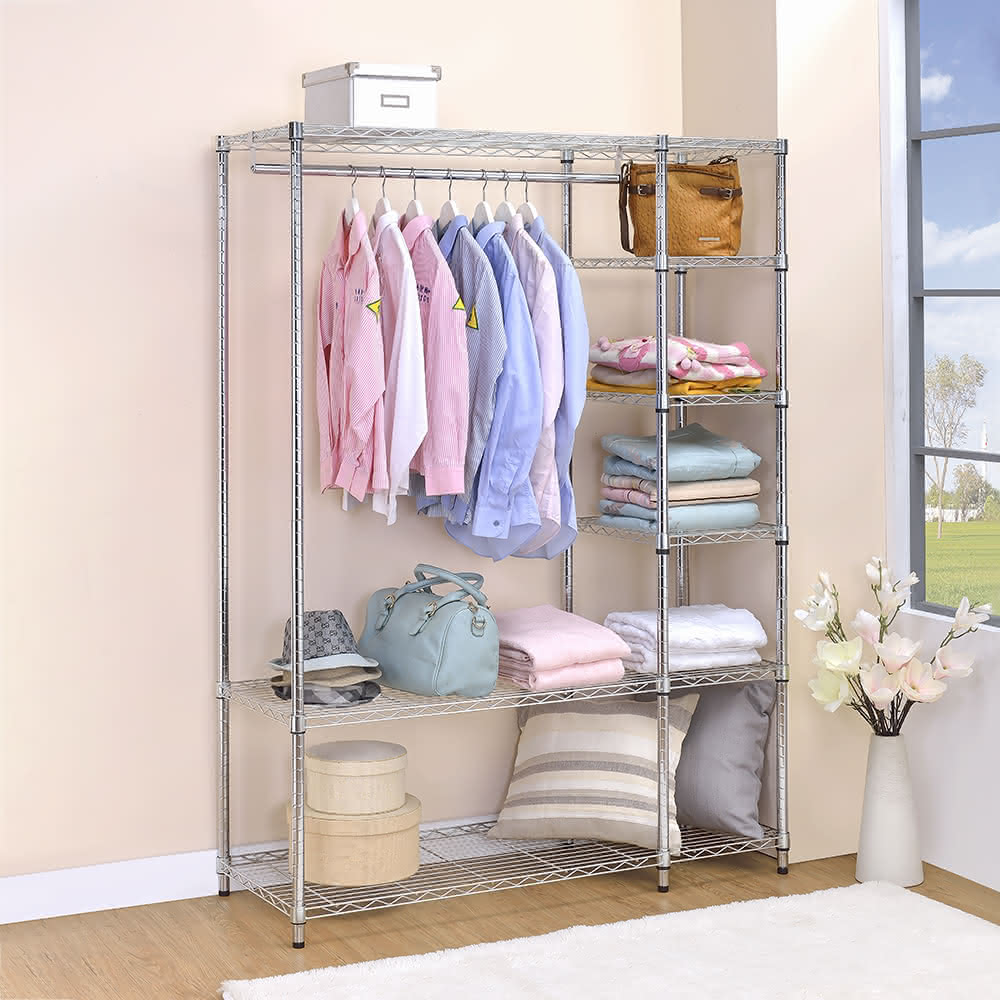 YCDMIT 六層單桿衣櫥架 120x45x180cm (波浪架 鐵力士架 吊衣架 衣帽架 收納架 置物架 層架 鐵架 儲物架)