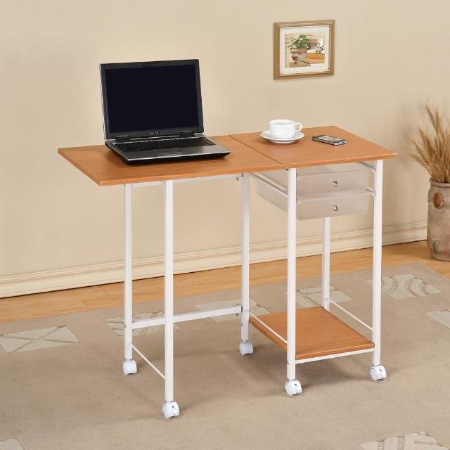 YCDMIT 兩抽移動式折疊桌 - 2色可選 (工作桌 電腦桌 辦公桌 收納車 書桌 邊桌 茶几桌 抽屜推車)