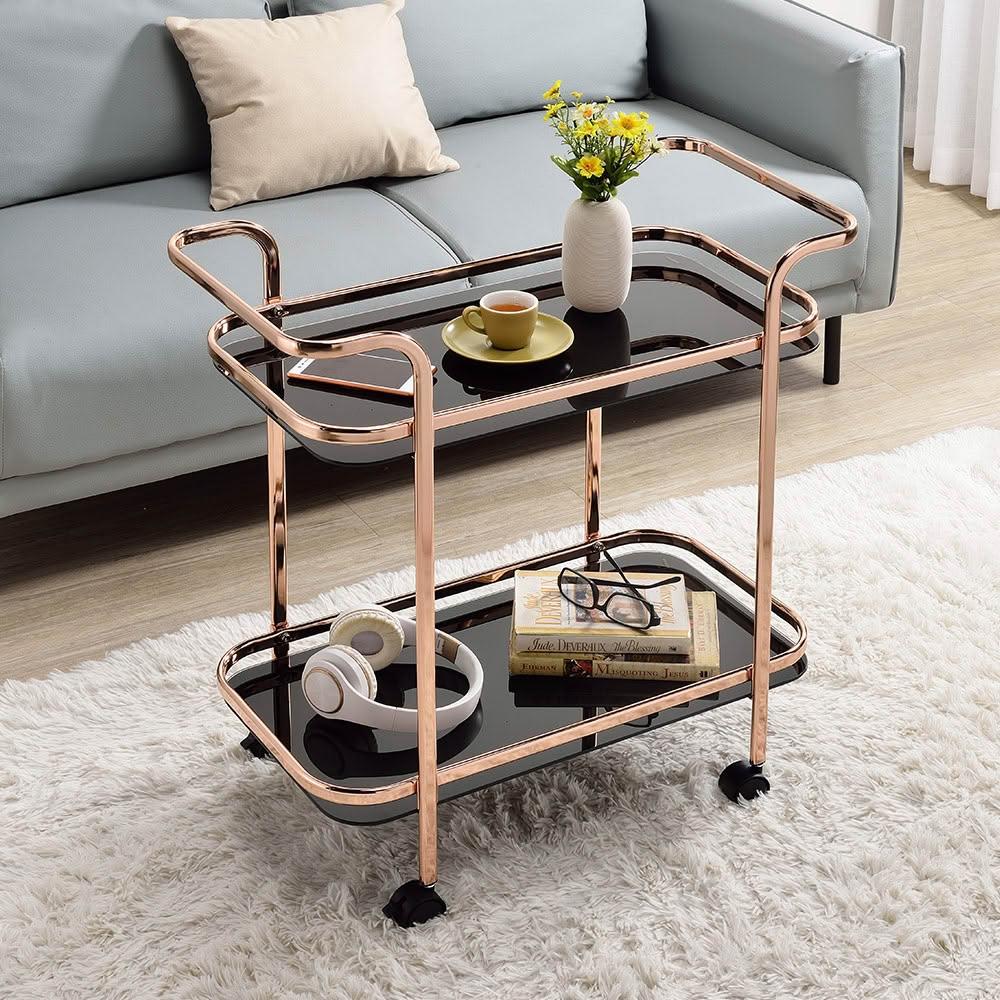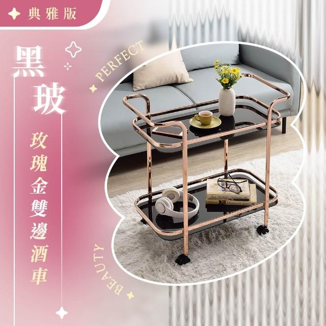 YCDMIT 黑玻玫瑰金雙邊酒車 - 典雅版 (餐車 扶手推車 活動車 置物推車 層架推車 茶几)