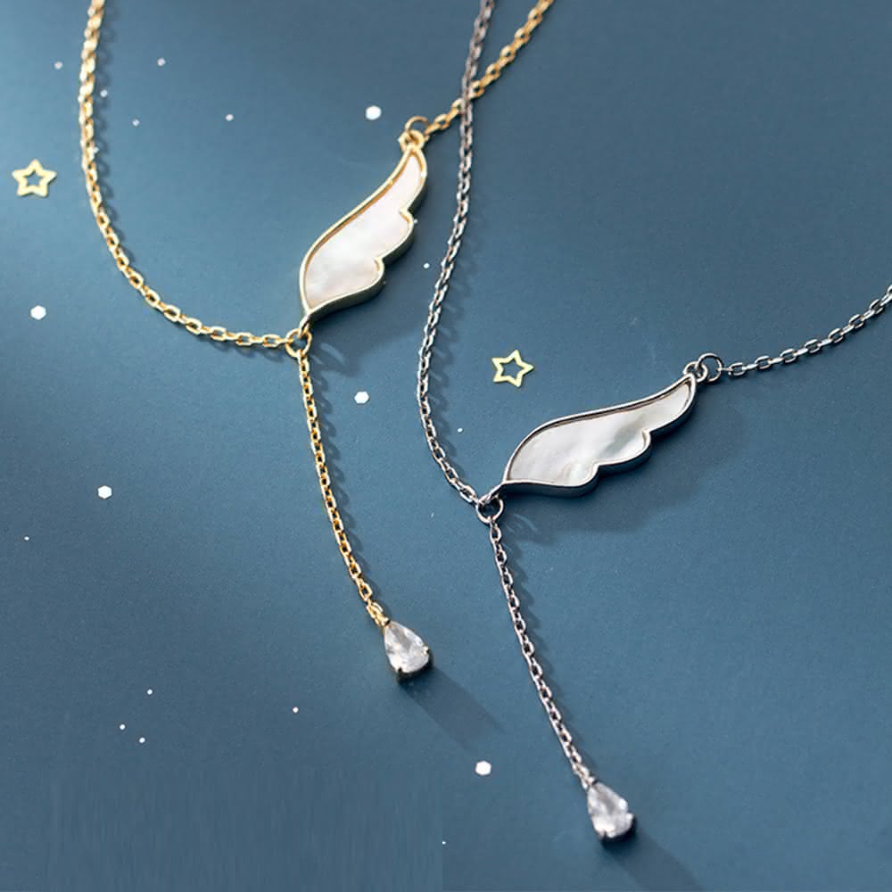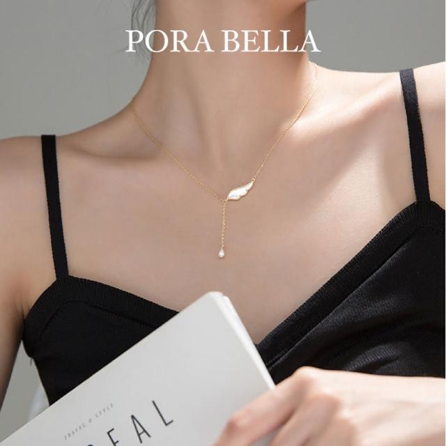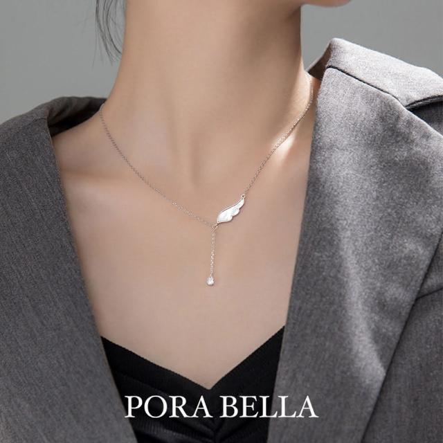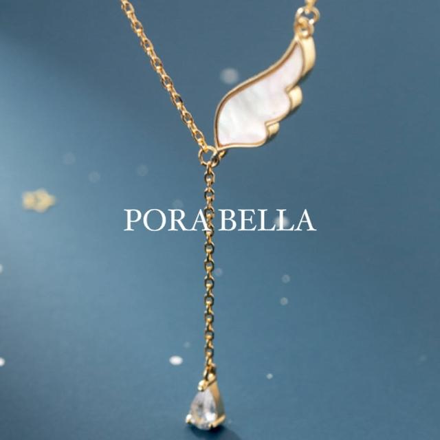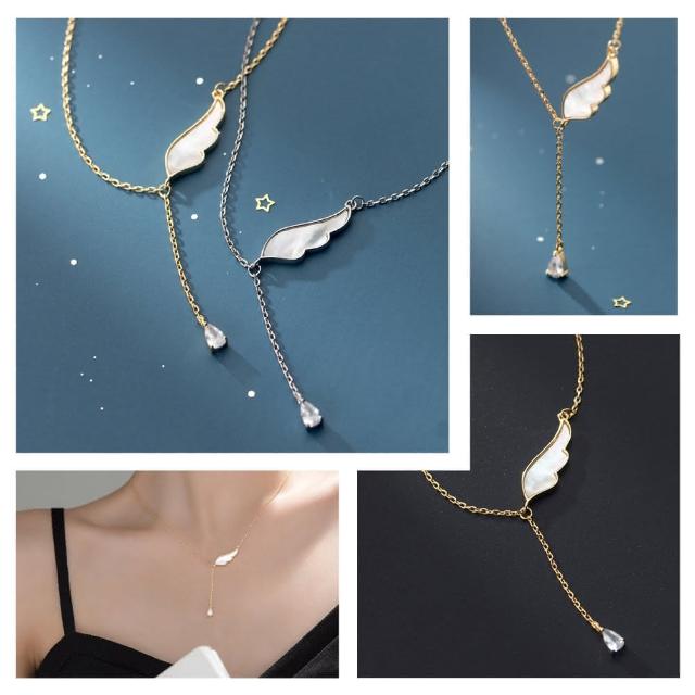 Porabella925純銀鋯石項鍊 天使翅膀 人工母貝鋯石Necklace