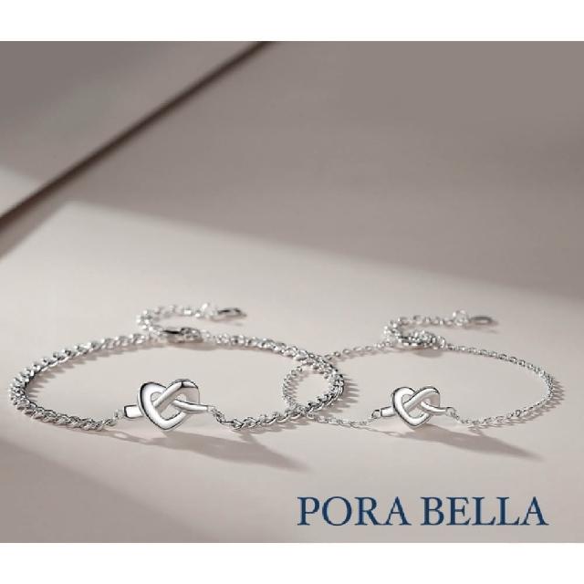 Porabella925純銀手鍊 同心結情侶手鏈 愛心結造型純銀 情人節禮物 情侶對鍊 告白 銀飾 Bracelet