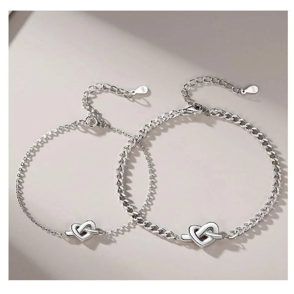 Porabella925純銀手鍊 同心結情侶手鏈 愛心結造型純銀 情人節禮物 情侶對鍊 告白 銀飾 Bracelet