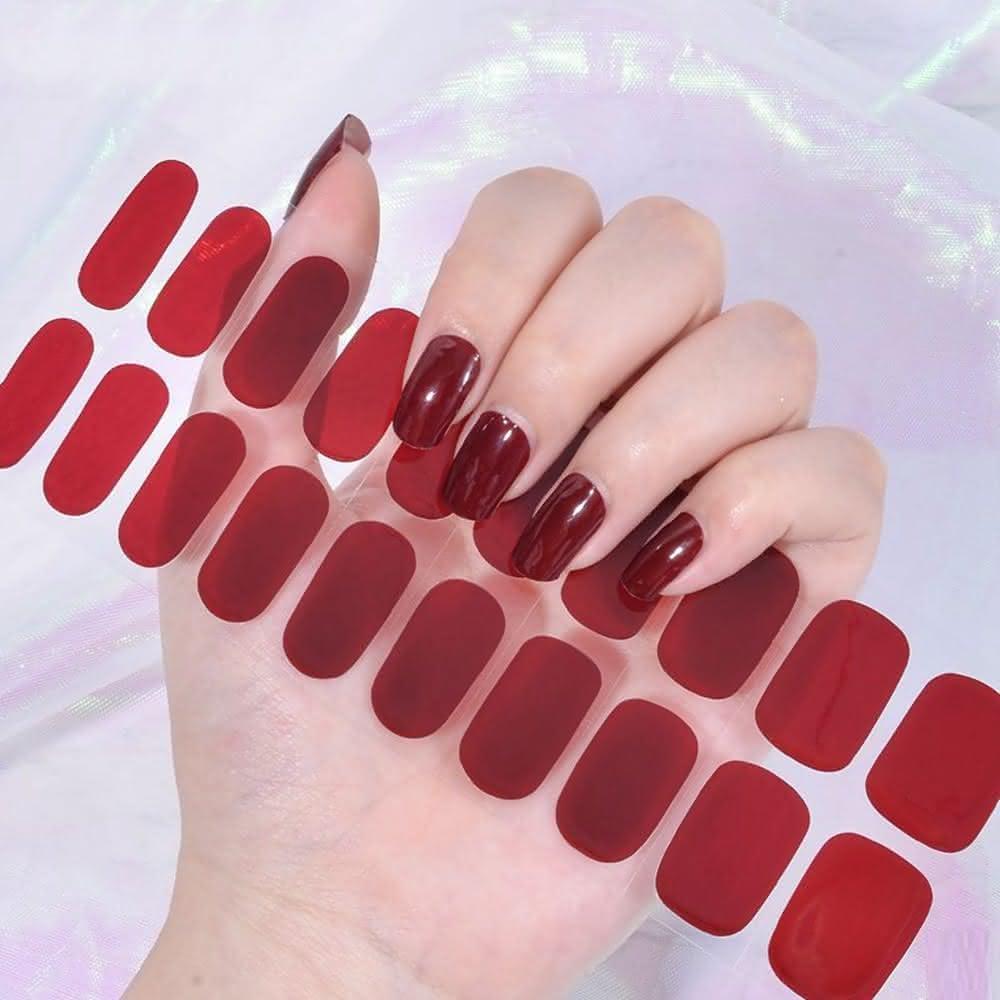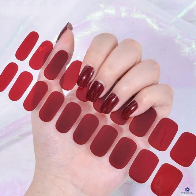Porabellains風美甲貼片 暗紅色美甲貼 單色指甲貼 穿戴甲 指甲貼片 凝膠貼片韓版光療美甲免照燈