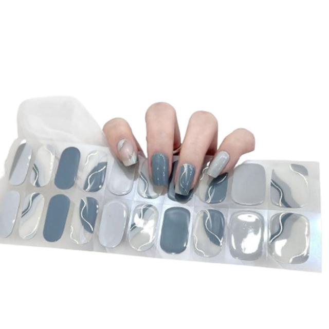 Porabellains風美甲貼片 灰藍色美甲貼 條文指甲貼 穿戴甲 假指甲指甲片 凝膠貼片韓版光療美甲免照燈
