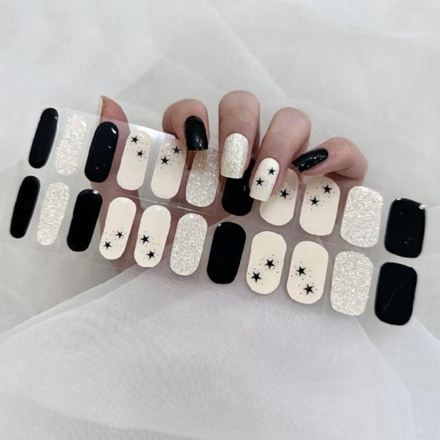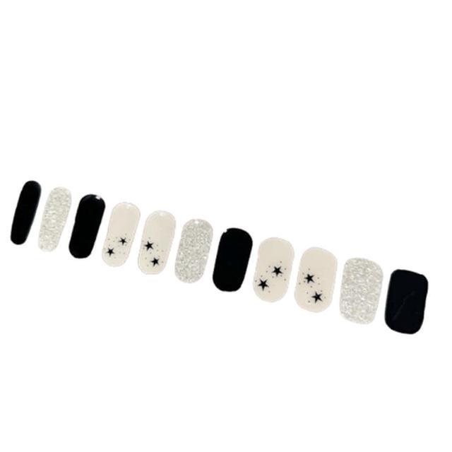 Porabellains風美甲貼片 黑白美甲貼 星星指甲貼 穿戴甲 假指甲指甲片 凝膠貼片 韓版光療美甲免照燈