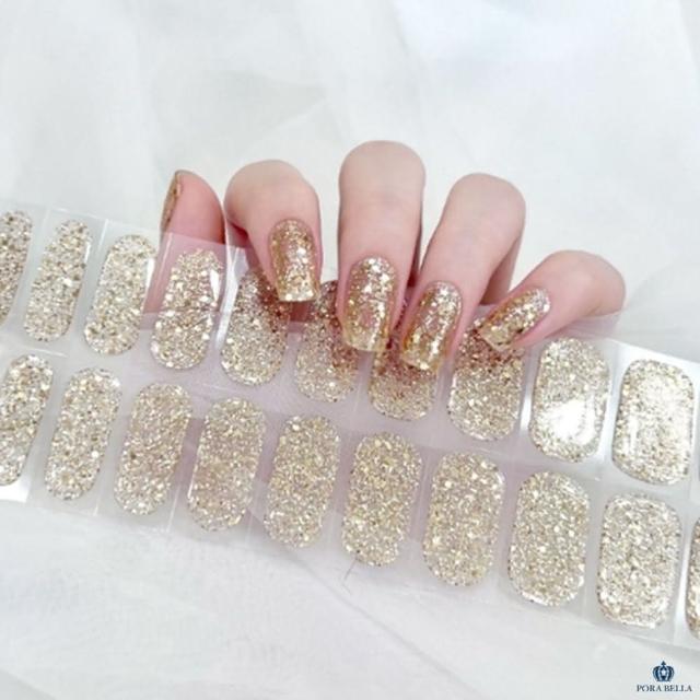 Porabellains風美甲貼片 金色閃粉美甲貼 指甲貼 穿戴甲 假指甲指甲片 凝膠貼片 韓版光療美甲免照燈