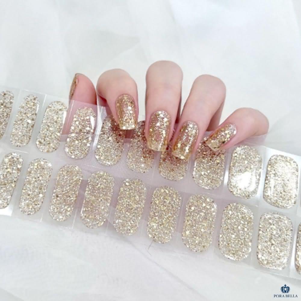 Porabellains風美甲貼片 金色閃粉美甲貼 指甲貼 穿戴甲 假指甲指甲片 凝膠貼片 韓版光療美甲免照燈
