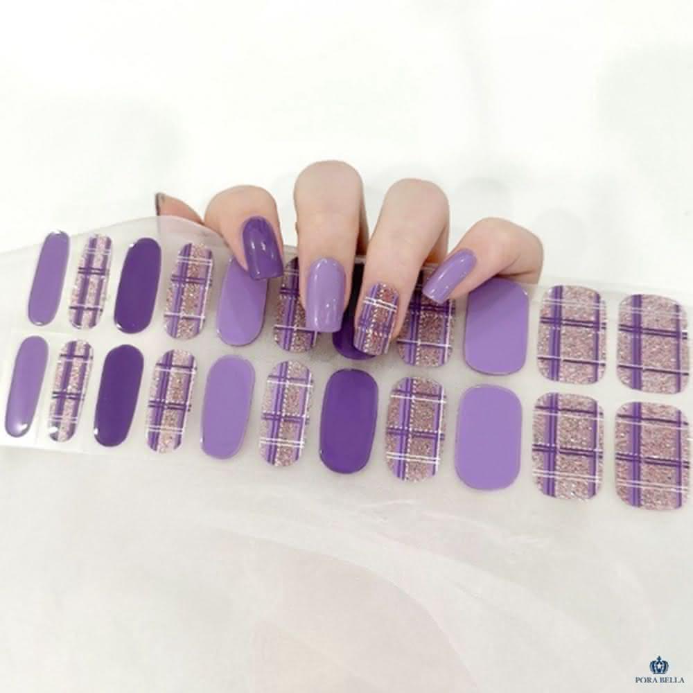 Porabellains風美甲貼片 紫色格子美甲貼 指甲貼 穿戴甲 假指甲指甲片 凝膠貼片 韓版光療美甲免照燈