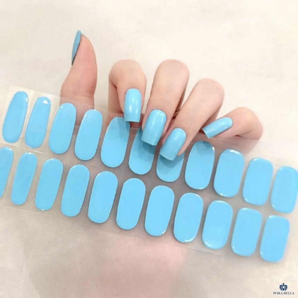 Porabellains風美甲貼片 淺藍色美甲貼 指甲貼 穿戴甲 假指甲指甲片 凝膠貼片 韓版光療美甲 免照燈