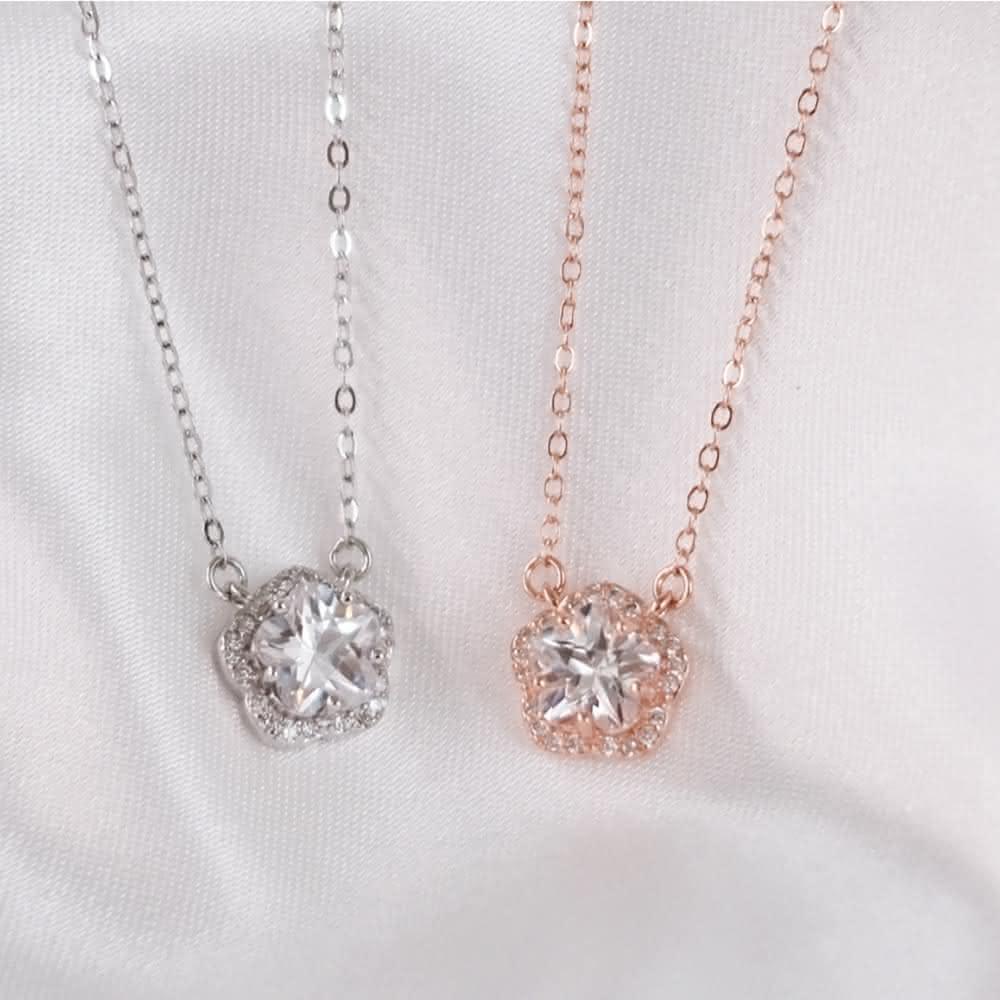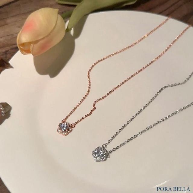 Porabella925純銀花朵鑲鑽吊墜 梅花項鍊 鑲鑽項鍊 鋯石鎖骨鏈 法式小眾 生日禮物送女友 Necklace