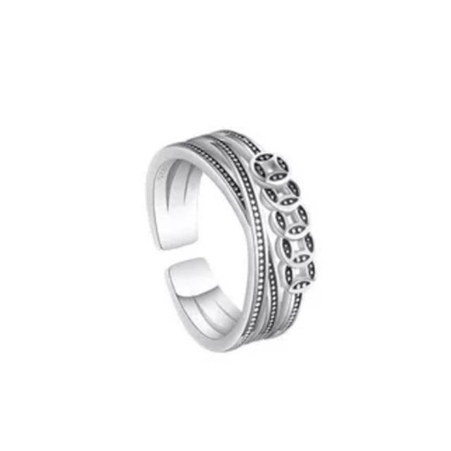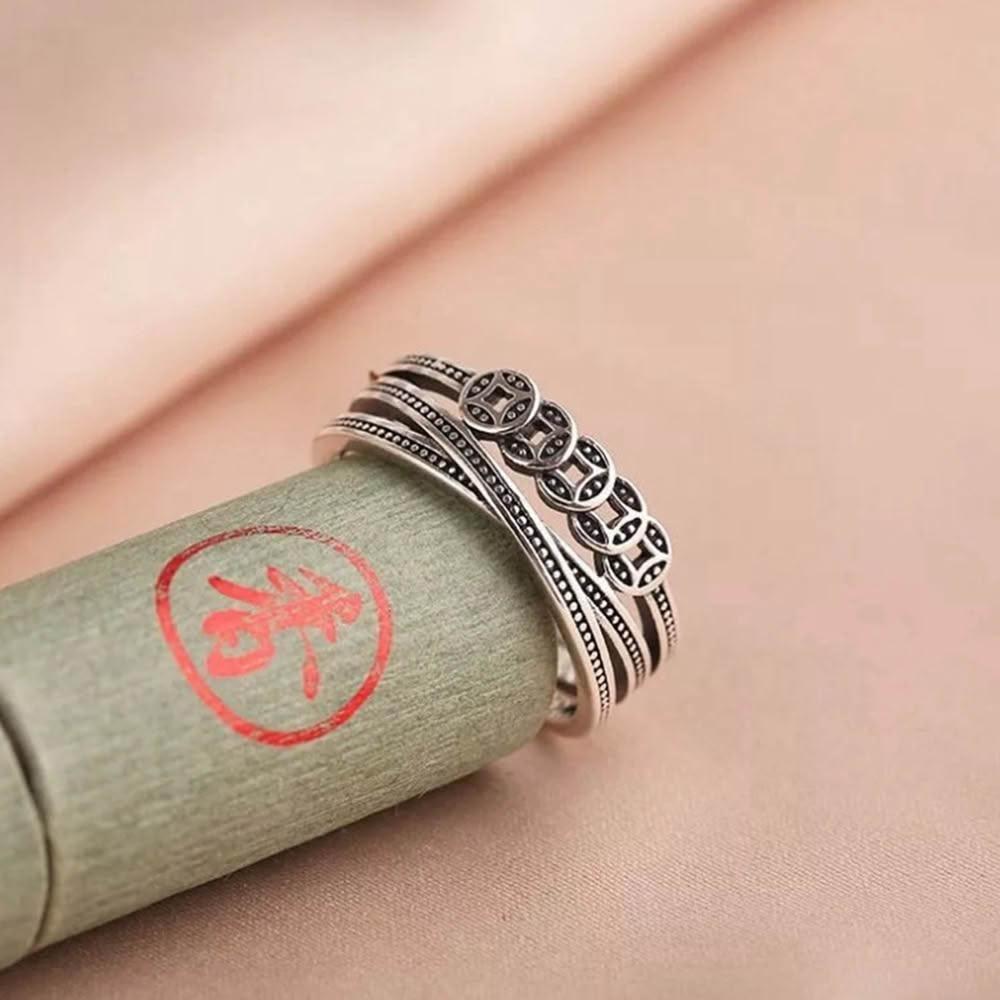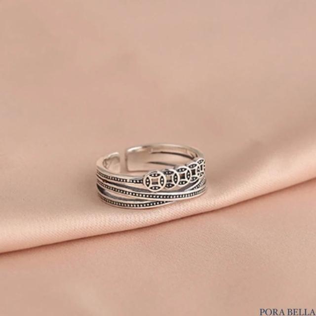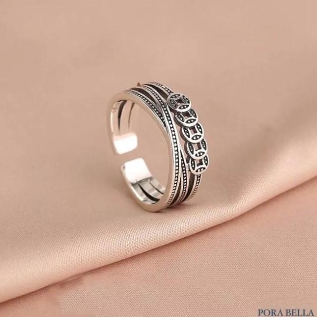 Porabella925純銀戒指 五帝錢戒指 復古指環 錢幣戒指 招財轉運男女通用 可調開口式戒指 銀戒 Rings