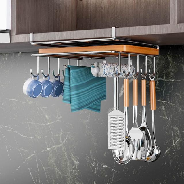 〈拜雅齊BYC〉廚房吊櫃下掛置物架(鍋蓋架 掛鉤架 懸掛櫥櫃下掛架 砧板收納架)