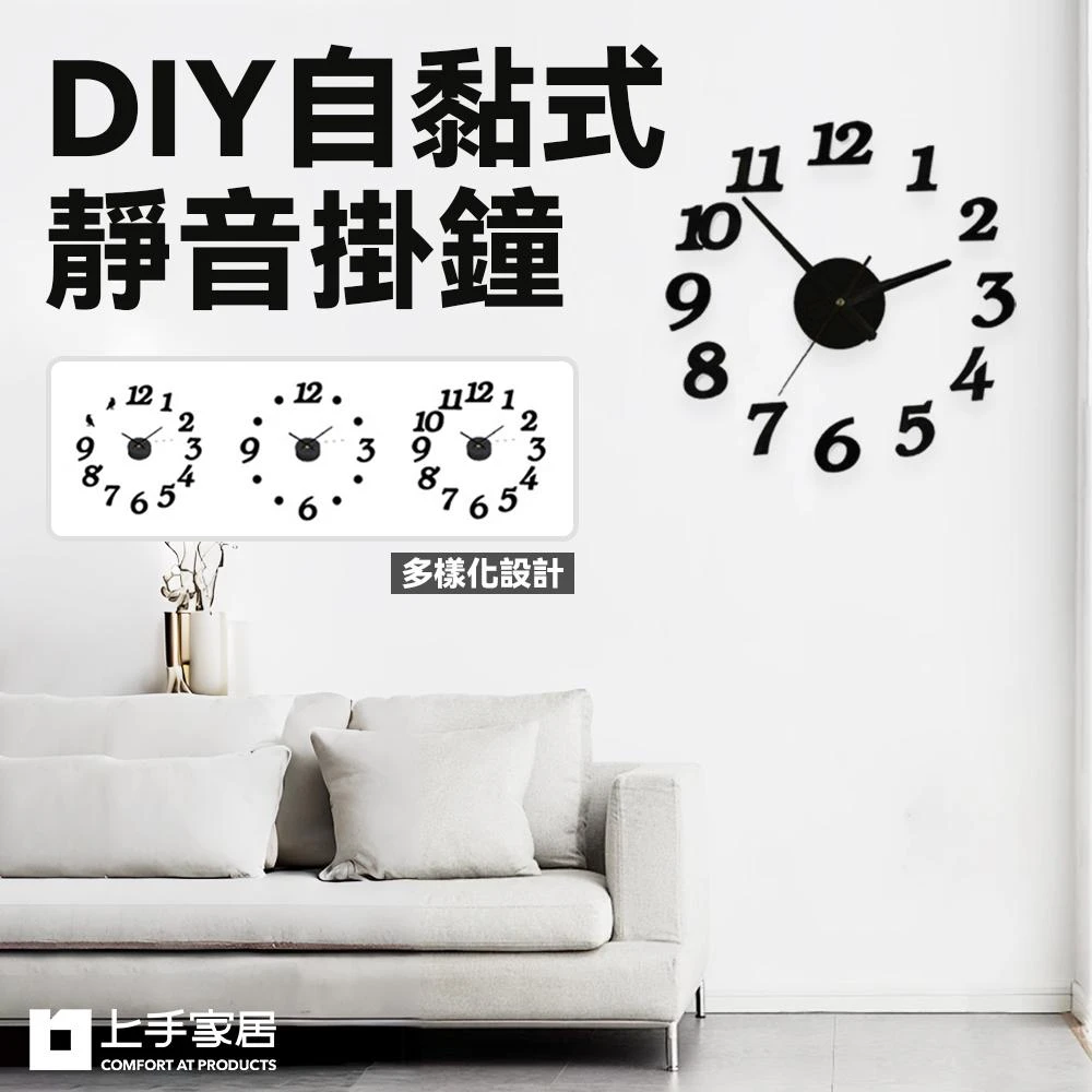 上手家居DIY靜音掛鐘(時鐘/大掛鐘/壁掛鐘/數字時鐘/靜音時鐘/靜音掛鐘/自黏壁鐘)