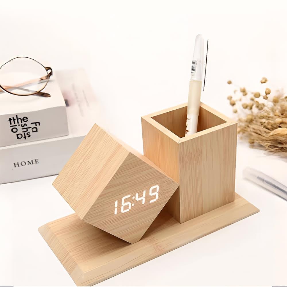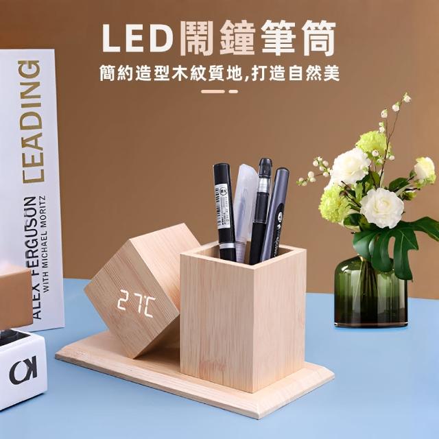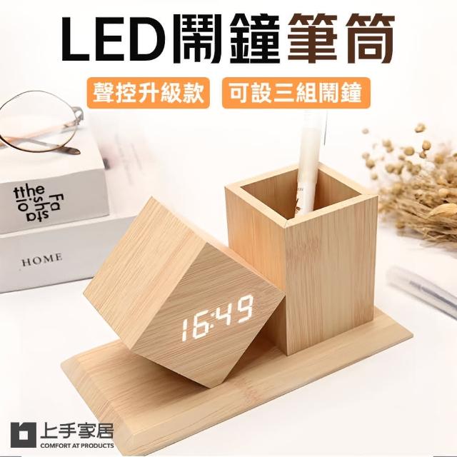 上手家居LED鬧鐘筆筒 /桌上收納/文具收納/收納盒/電子鐘