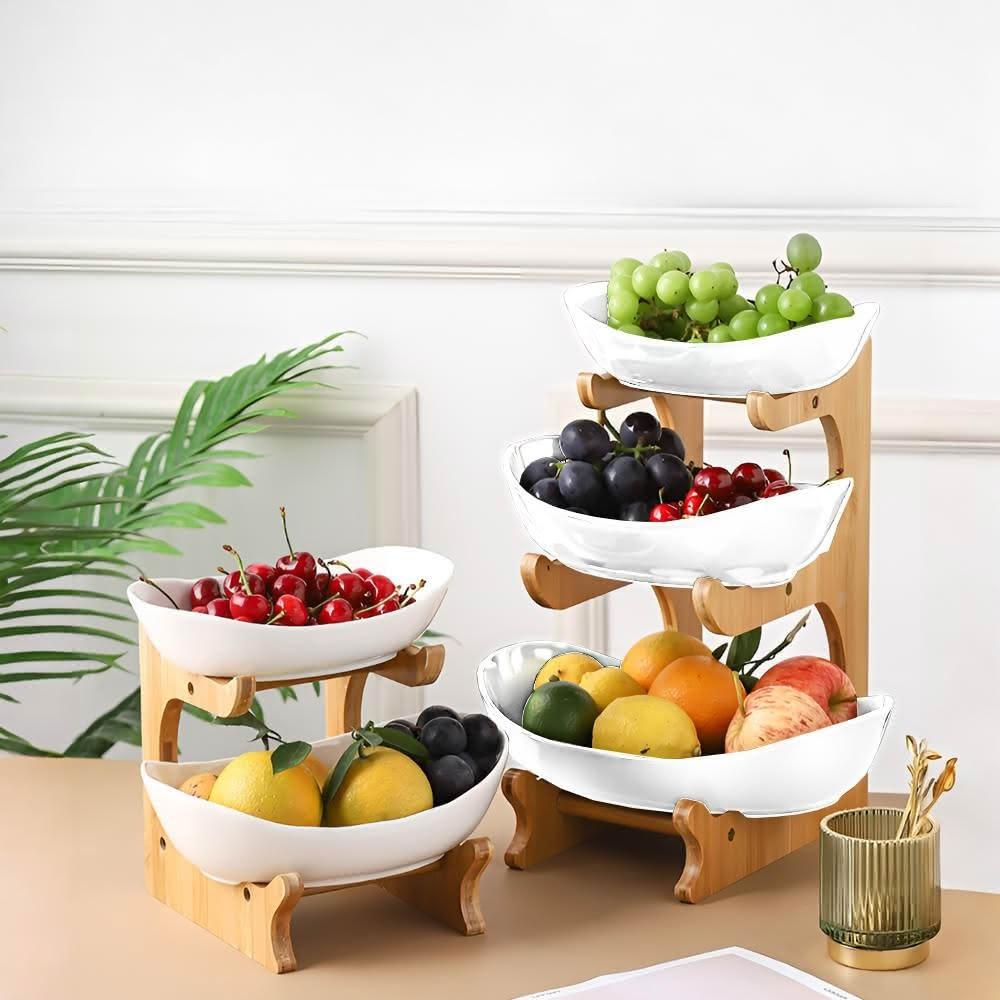 上手家居陶瓷水果盤 三層(果盤/水果盤/點心盤/糖果盤/零食盤)