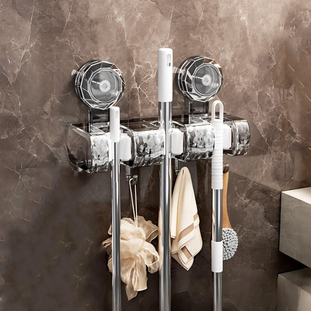 上手家居三格吸盤式拖把架 /拖把夾/拖把掛鉤/拖把掛勾/掃把收納/吸盤拖把架/拖把掛架