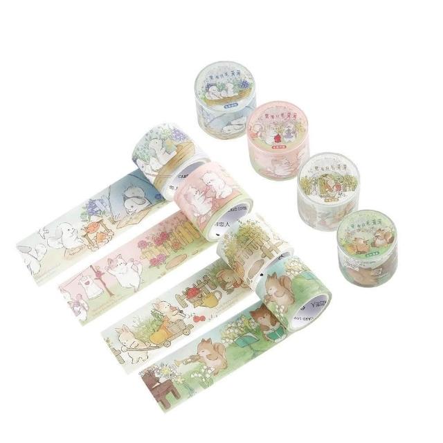 上手家居可愛森林動物和紙膠帶 4件組(手帳貼紙/可愛貼紙/裝飾貼紙/和風紙膠帶)