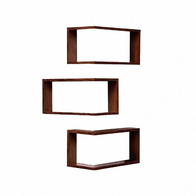 上手家居實木轉角置物架-3件組(牆角置物架/置物架/牆壁置物架/壁掛置物架/公仔櫃)