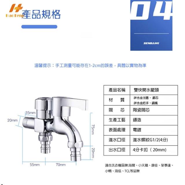 Hao Teng雙出水洗衣機水龍頭 一進二出高配版(鋅合金主體、把手 可接兩台洗衣機)