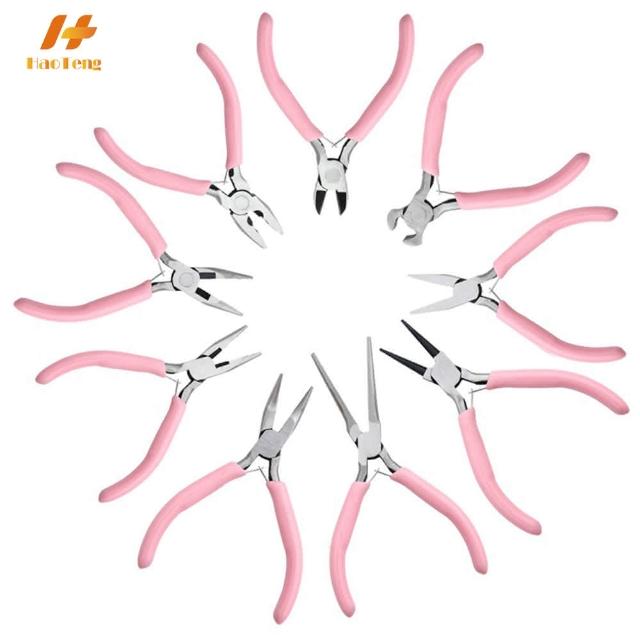 Hao Teng 手工藝DIY必備工具鉗 尖嘴鉗 彎頭鉗 剪鉗 圓頭鉗 工具鉗(粉色迷你鐵鉗)