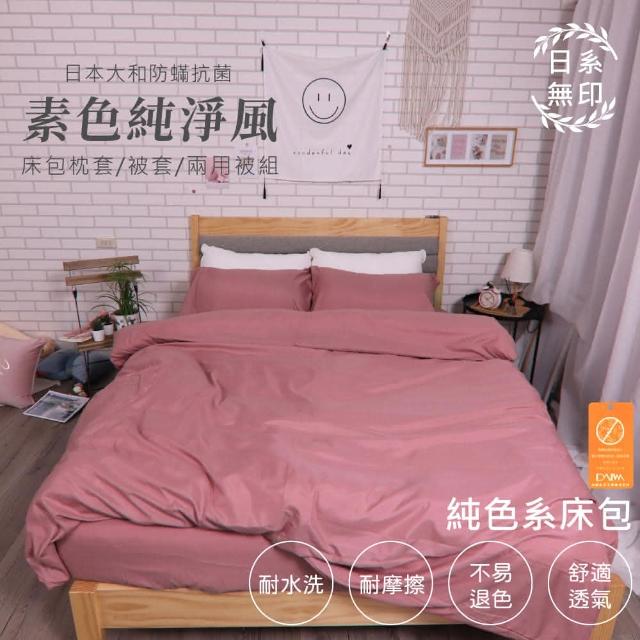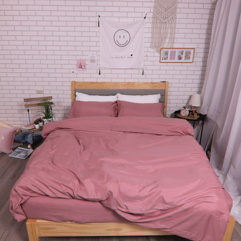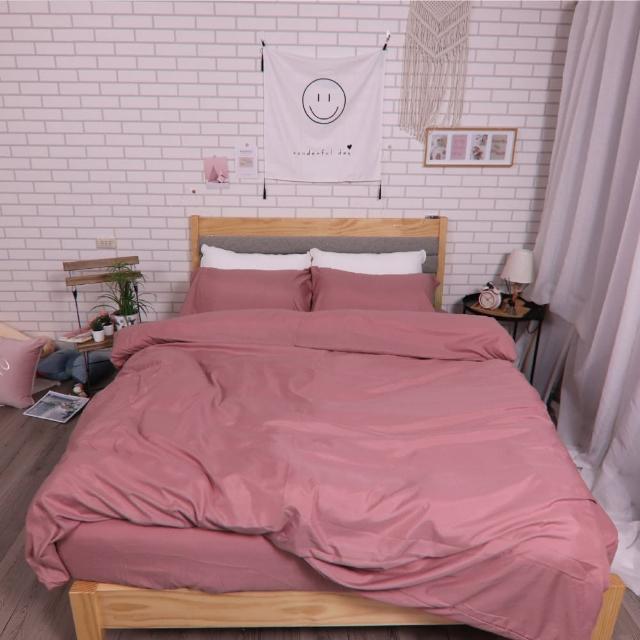 Yatin 亞汀台灣製 日本大和純淨無印風素色床包枕套組 玫粉色特大