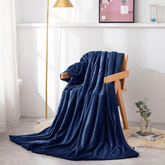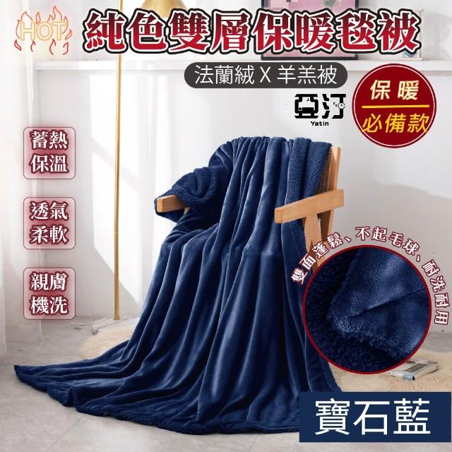 Yatin 亞汀雙層加厚素色法蘭絨+羊羔絨毛毯 寶石藍 120x200/150x200/180x200純色 毯子 被子 棉被