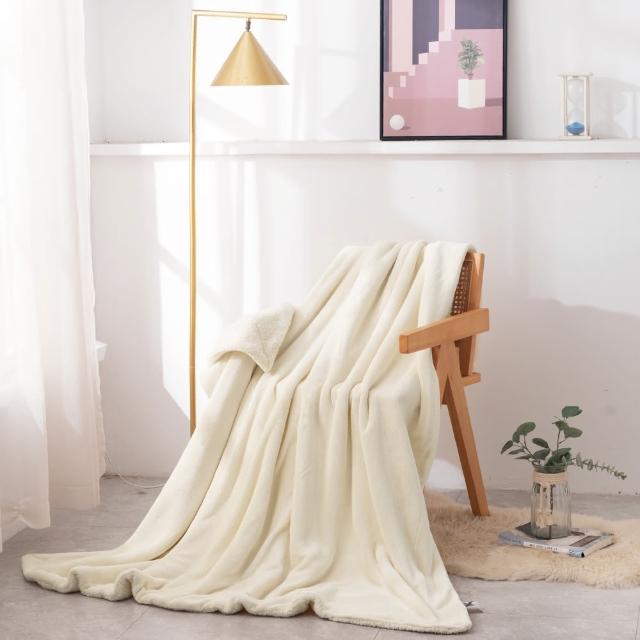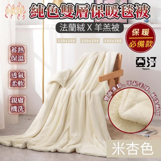 Yatin 亞汀雙層加厚素色法蘭絨+羊羔絨毛毯 米杏色 120x200/150x200/180x200純色 毯子 被子 棉被