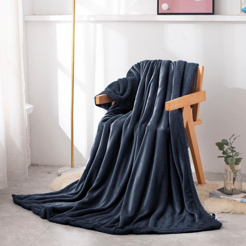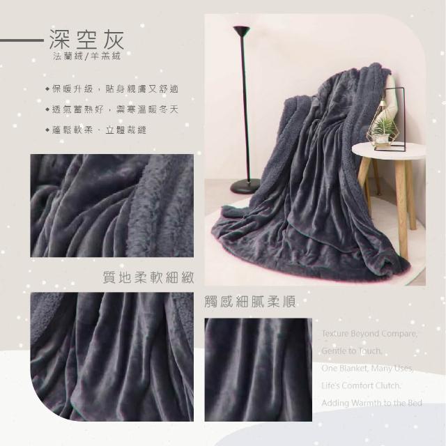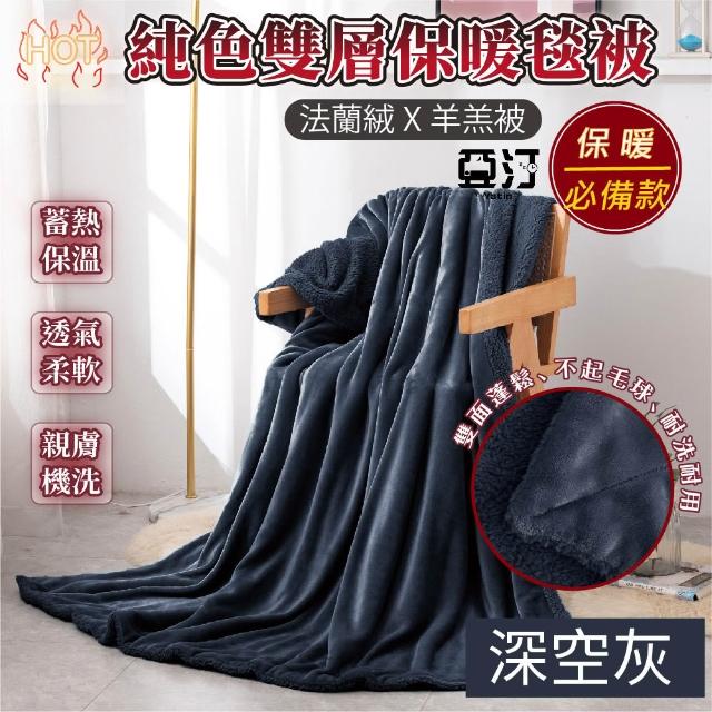 Yatin 亞汀雙層加厚素色法蘭絨+羊羔絨毛毯 深空灰 120x200/150x200/180x200純色 毯子 被子 棉被