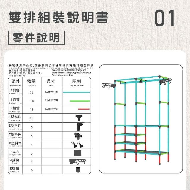 開放式組裝衣櫃-雙排衣櫃、衣架、大型衣架