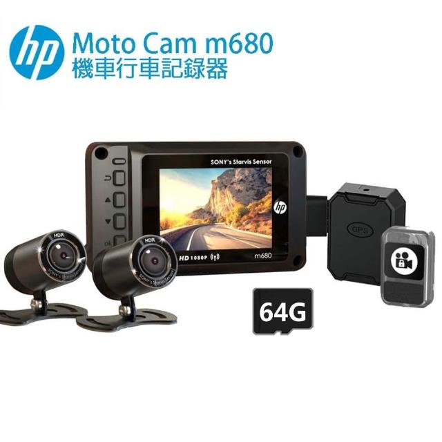 HP 惠普Moto Cam M680 GPS測速版 前後雙鏡高畫質數位機車行車記錄器(贈64G+車牌架)