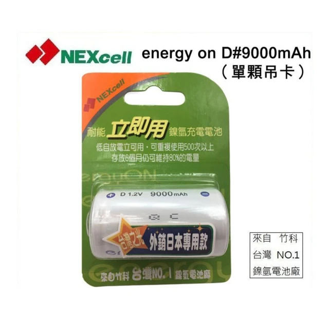NEXcell 耐能 energy on D 9000mAh 1號 低自放 鎳氫電池 充電電池 單顆吊卡