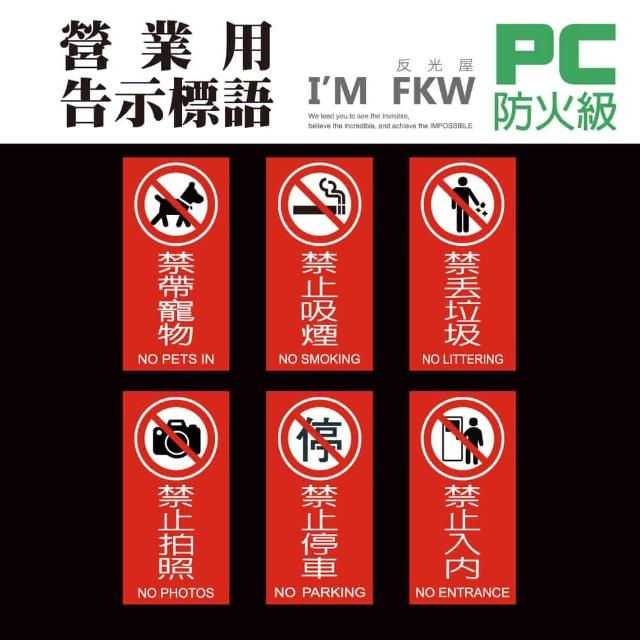 反光屋FKW 標示牌 標禁止入內 禁止停車 禁止拍照 防火級PC 標語貼紙 警告標語 營業貼紙 MIT 20*10公分(營業貼紙 防水貼紙 營業用)