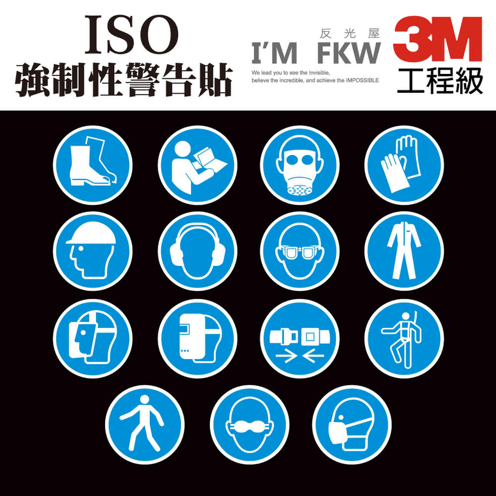 反光屋FKW 3M工程級 ISO強制性 反光貼紙 警告貼紙 標準圖示 安全 護目鏡 耳罩 防毒面具 可另外客製化圖樣尺寸(工安標誌 反光貼紙 3M貼紙)