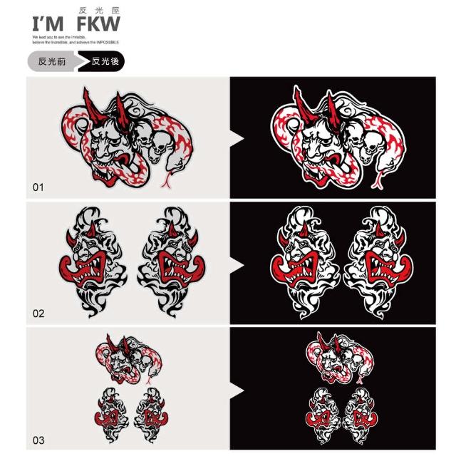反光屋FKW 般若組合 鬼面具 鬼怪 鬼頭 日本風 日式風格 1組3張 反光車貼 高亮度防水耐曬 機車貼紙 汽車貼紙(機車貼紙 汽車貼紙 反光貼紙 防水貼紙 車貼)