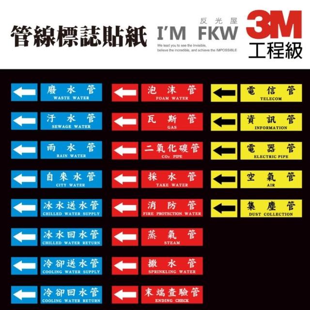 反光屋FKW 3M工程級 反光貼紙 管線標示 消防管路貼 機電管路 管路流向指示貼紙 防水(反光貼紙 管路流向指示貼紙)