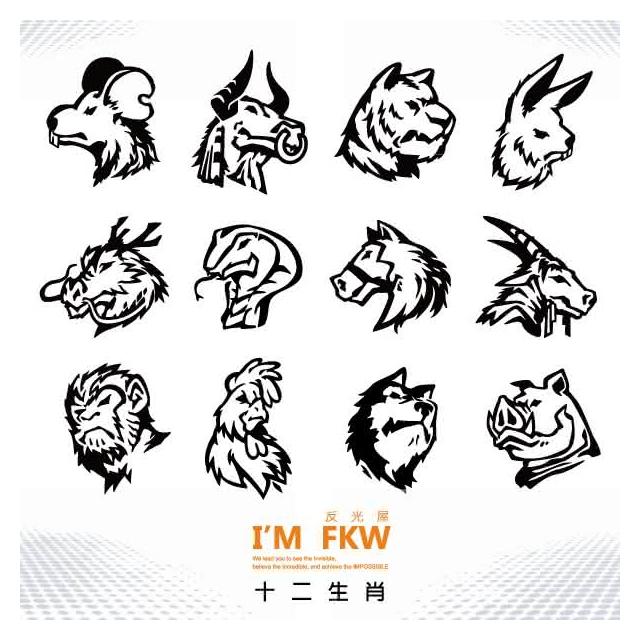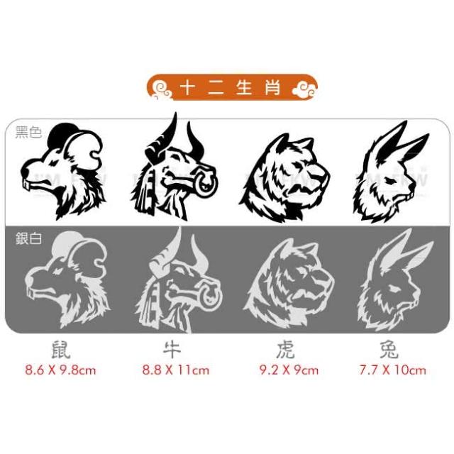 反光屋FKW 十二生肖 生肖 設計師手繪 鼠牛虎兔龍蛇馬羊猴雞狗豬 反光貼紙 車貼 動物 高亮度防水(機車貼紙 汽車貼紙 反光貼紙 防水貼紙 車貼)