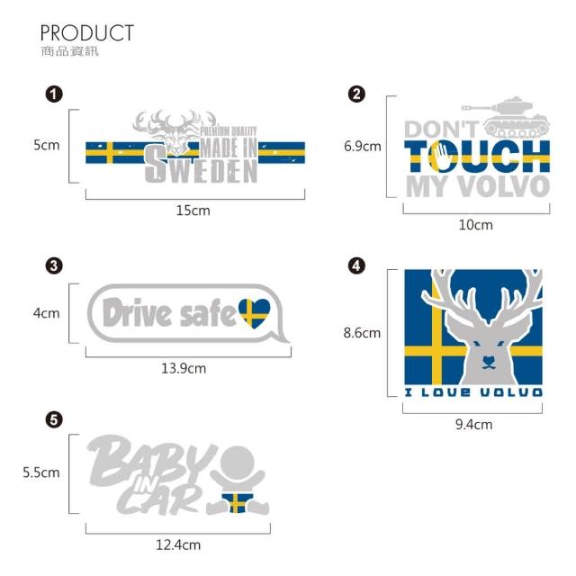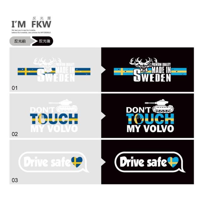 反光屋FKW VOLVO SAAB V40 V60 XC40 XC60 XC90 S60 通用 瑞典國旗 反光貼紙(機車貼紙 汽車貼紙 反光貼紙 防水貼紙 車貼)