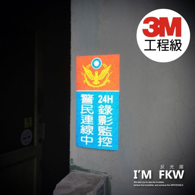 反光屋FKW 警民連線中 24H錄影監控 監視器 警民連線貼紙 安全防護 保全系統 警告 3M工程級(反光貼紙 防水貼紙 貼紙)