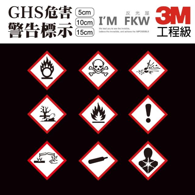 反光屋FKW GHS危害警告標示 5公分 10公分 3M反光貼紙 易燃警告 鋼瓶 警示安全 標準圖示 防水耐曬(反光貼紙 防水貼紙 貼紙)