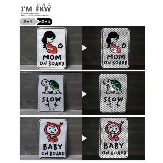 反光屋FKW BABY ON BOARD 反光磁貼 BABY IN CAR 車貼 3M鑽石級反光材質 磁鐵 附雙面膠備用