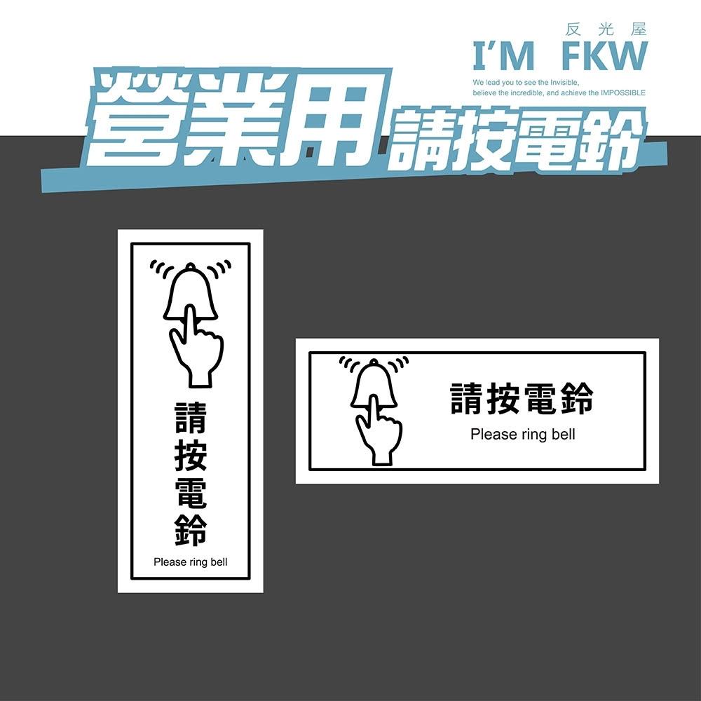 反光屋FKW 請按電鈴 入內請按鈴 營業用標語 門口貼紙 貼紙 防水耐曬 6*15公分 PC網印(營業貼紙 防水貼紙 營業用)