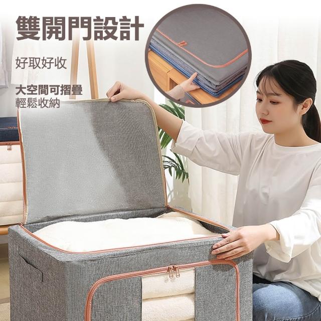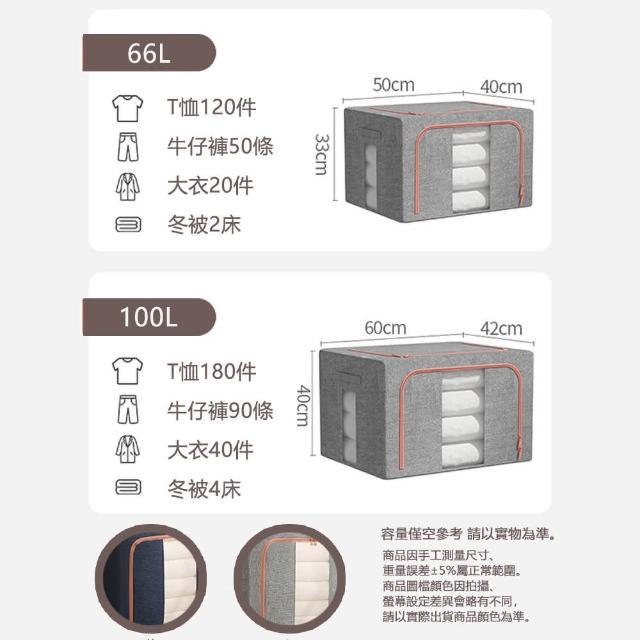 LEBON100L棉麻雙開鋼架收納箱摺疊收納箱 衣服整理 衣物收納 衣物整理 收納整理箱 折疊箱