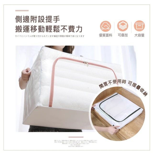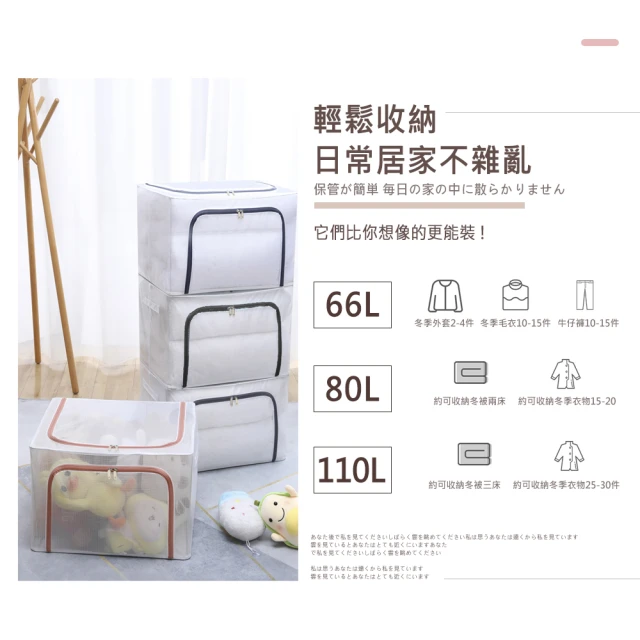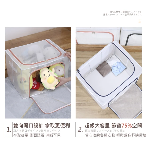 LEBONPVC雙開口66L鋼架收納箱 透明收納箱 衣物收納箱 棉被收納 摺疊收納箱 整理箱