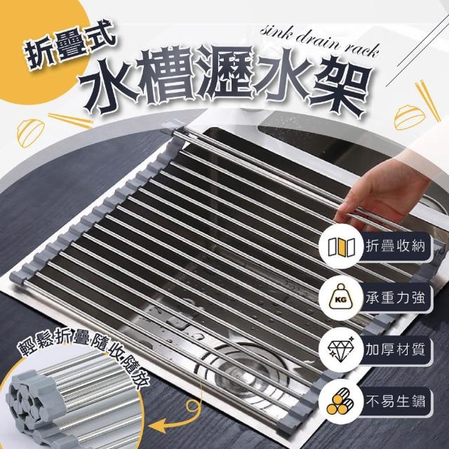 LEBON不鏽鋼捲簾式折疊水槽瀝水架10管20x37cm