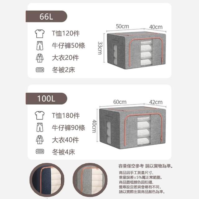 LEBON4入/66L棉麻雙開鋼架收納箱摺疊收納箱 衣服整理 衣物收納 衣物整理 收納整理箱 折疊箱