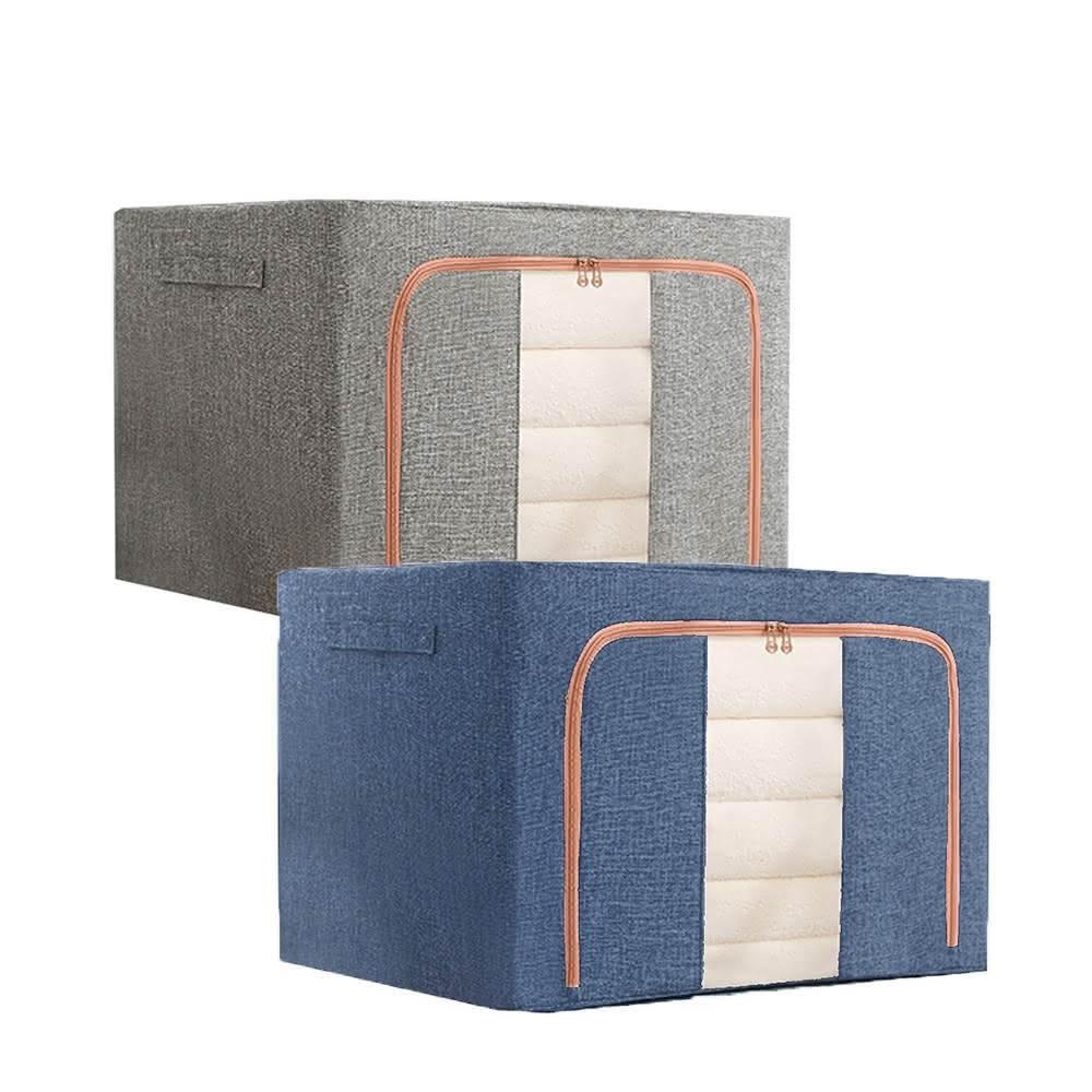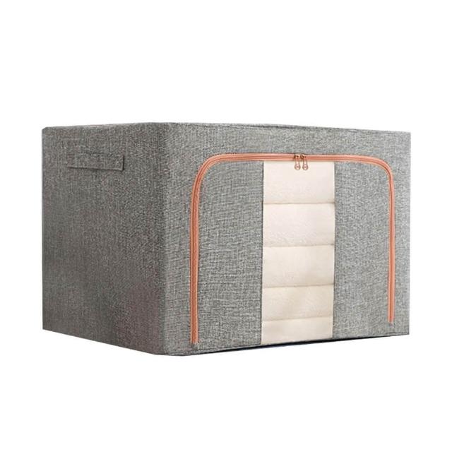 LEBON4入/100L棉麻雙開鋼架收納箱摺疊收納箱 衣服整理 衣物收納 衣物整理 收納整理箱 折疊箱